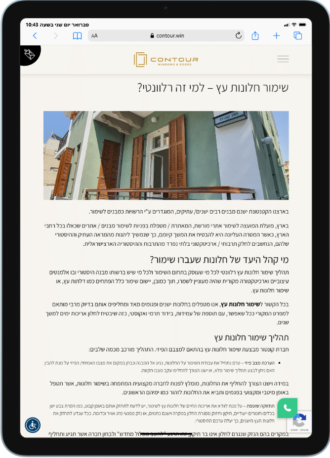 הוא מושך קהל שמחפש שילוב בין עיצוב לפתרון מעשי, מחזק את המיצוב של קונטור כספקית פתרונות פתיחה איכותיים, ומייצר תנועה אורגנית שמגיעה מתוך חיפושים רלוונטיים בעולם החלונות, הדלתות והבנייה.